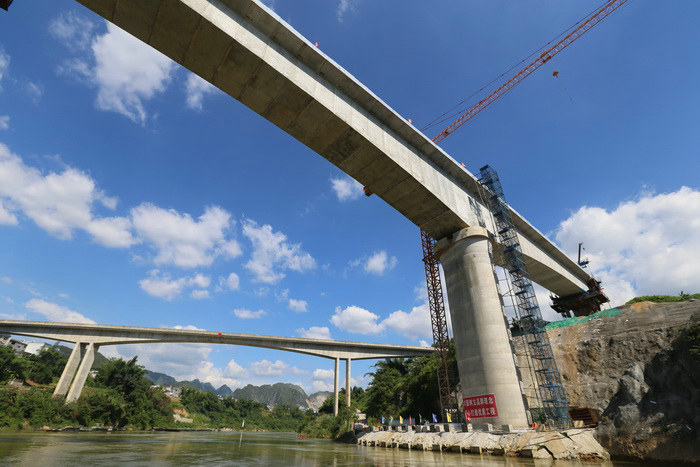 主跨156米的連續(xù)梁似一道美麗的彩虹,飛越紅渡紅水河兩岸,成為了馬山、都安兩縣的地標(biāo)建筑。