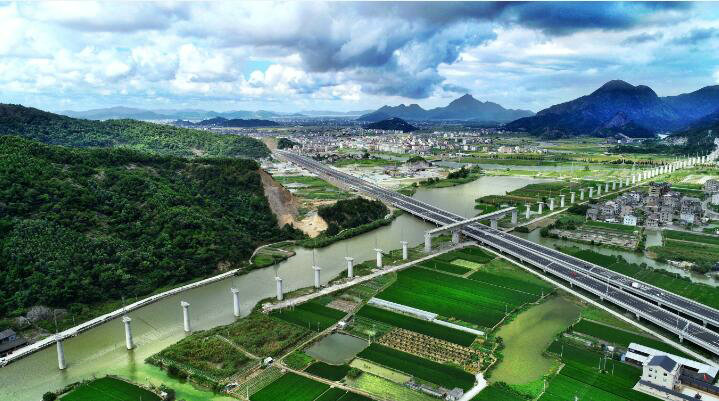 由中鐵十一局集團(tuán)承建金臺鐵路七標(biāo)項(xiàng)目,位于浙江省臺州市境內(nèi),管區(qū)線路長度38.92km,合同金額15.17億元,合同工期44個(gè)月。項(xiàng)目積極踐行綠水青山就是金山銀山的重要思想,深入開展811美麗浙江建設(shè)行動,全方位推進(jìn)環(huán)境建設(shè)與生態(tài)保護(hù),大力倡導(dǎo)綠色發(fā)展、和諧發(fā)展,建筑“最美”金臺鐵路工程。截止目前,項(xiàng)目橋梁、路基、隧道工程基本全部完工。(文/圖 李航天)