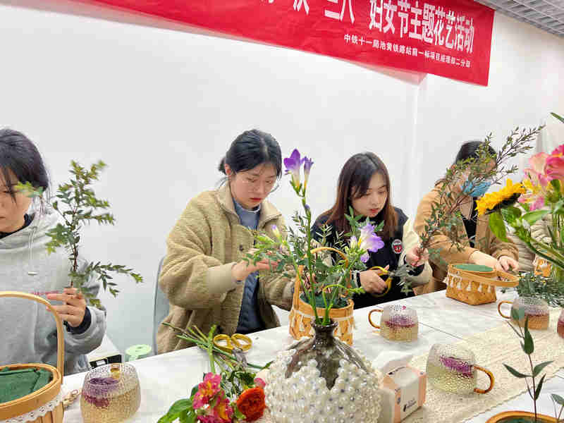 陽春三月,百花爭鳴。3月8日,在第99個(gè)國際“三八”婦女節(jié)來臨之際,為更好地展現(xiàn)池黃項(xiàng)目女員工風(fēng)采,以積極向上的精神面貌開展各項(xiàng)工作,擁有健康、充滿活力的生活態(tài)度,項(xiàng)目組織全體女員工及家屬開展了“情滿一線、花語芬芳”主題插花活動(dòng)。