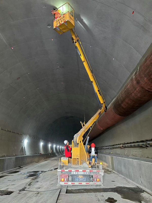 中鐵十八局集團重黔鐵路6標大坪隧道襯砌質(zhì)量檢測( 祝鵬 攝)