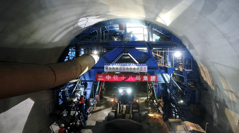 中鐵十八局集團隧道公司負責施工的渝湘高鐵重慶至黔江段站前6標李家灣1號隧道貫通現(xiàn)場(田緣圓 攝)