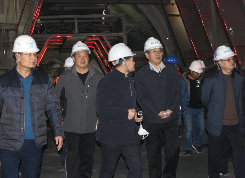 甘肅省公航旅董事長、黨委書記榮志遠(左四)在3#斜井掌子面觀摩