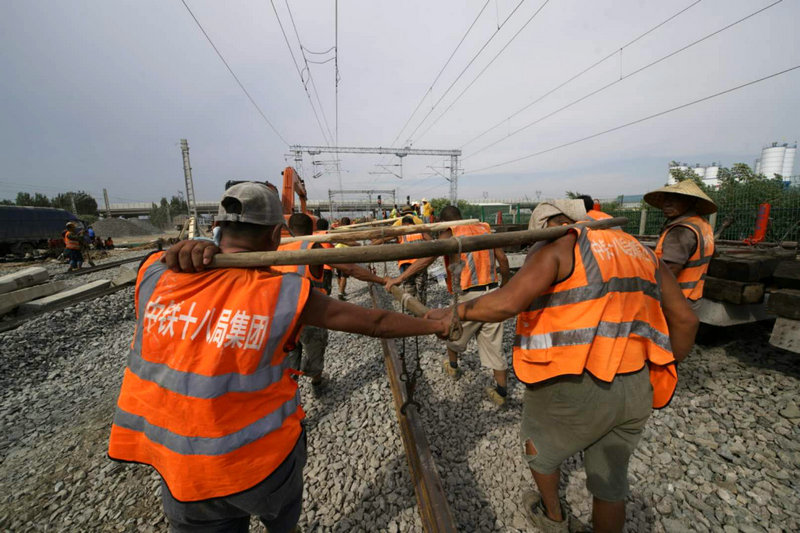 中鐵十八局集團(tuán)五公司建筑公司黨委書記胡興光介紹,既有線施工地下電纜多,項目部在鐵路線30米范圍內(nèi)施工時嚴(yán)格按照規(guī)程挖探溝對線纜位置進(jìn)行確認(rèn)并進(jìn)行保護(hù),30米以外區(qū)域找相關(guān)單位進(jìn)行確認(rèn)、遷改,確保不因破壞電纜影響行車安全。因前期征地拆遷影響了正常工期,用于正常施工的有效工期短,專業(yè)工序多,涉及多個不同作業(yè)單位,空間交叉作業(yè)多,互相干擾,互為制約,為了理順這些,現(xiàn)場調(diào)度要精要細(xì),安全管控要準(zhǔn)要嚴(yán),24小時兩班倒連軸轉(zhuǎn),機(jī)停人不歇,職工每天工作時間達(dá)19小時。