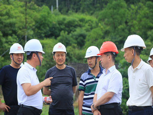 杜立新(左三)現(xiàn)場詢問施工相關(guān)情況