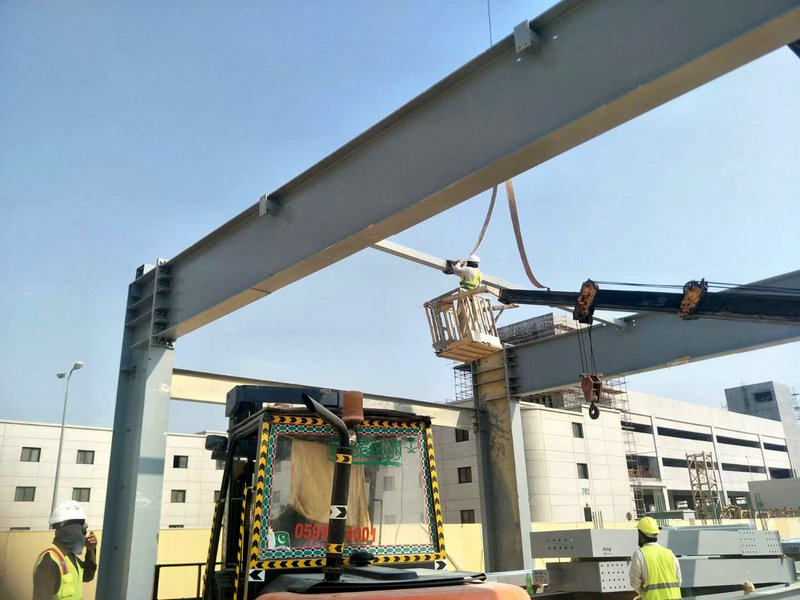 2、中鐵十八局集團(tuán)建設(shè)者在沙特達(dá)曼商業(yè)園區(qū)達(dá)蘭加工車間安裝鋼結(jié)構(gòu)(徐名峰 攝)