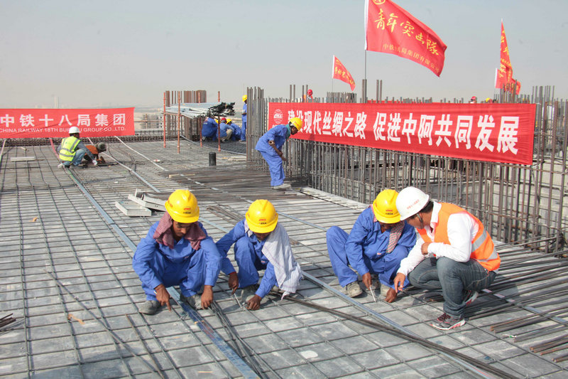 為了早日建成象征中沙友誼的工程,擦亮中國(guó)鐵建品牌,中鐵十八局集團(tuán)國(guó)際公司副總經(jīng)理兼沙特公司黨工委書記、總經(jīng)理陳德斌和項(xiàng)目經(jīng)理付東風(fēng)以及項(xiàng)目部員工放棄中秋休假與家人團(tuán)聚,堅(jiān)守崗位,忍受著炎熱天氣,積極組織鋼結(jié)構(gòu)、空心樓板安裝,搶攻雨水管線施工,不斷加快施工進(jìn)度。