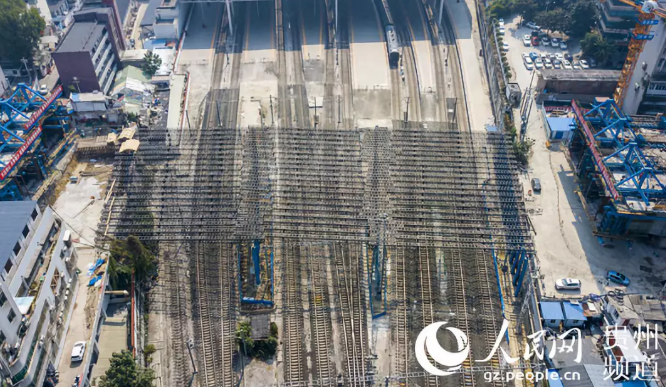 “現(xiàn)在是0點(diǎn)30分,封鎖命令已下達(dá),可進(jìn)站施工。”近日,隨著中鐵八局三公司人民大道項(xiàng)目部駐站防護(hù)員進(jìn)網(wǎng)命令的發(fā)布,50余名身穿防護(hù)背心的項(xiàng)目管理人員與工人有序進(jìn)入貴陽(yáng)火車(chē)站內(nèi)進(jìn)行條形基礎(chǔ)硬隔離搭設(shè)。由此,西南片區(qū)最大上跨滬昆鐵路立交橋防護(hù)棚架施工迎來(lái)了首個(gè)Ⅲ級(jí)施工點(diǎn)。 這頂“安全帽”總長(zhǎng)86米,寬度43米,總面積3698平方,覆蓋貴陽(yáng)火車(chē)站11股道,跨越營(yíng)業(yè)線施工,防護(hù)棚架底部高于接觸網(wǎng)硬橫跨0.5m,為西南片區(qū)跨度最長(zhǎng)、面積最大防護(hù)棚架。