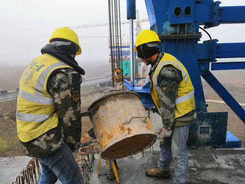 元旦過后,濟(jì)寧地區(qū)也迎來新年初雪。從1月5日下午便開始落雪,白雪皚皚給大地披上了銀裝,也給工地上那兩套鋼鐵巨獸般的運(yùn)架設(shè)備添上一層厚厚的羽絨棉被。颯颯的風(fēng)雪聲中冬季的濟(jì)寧分外凜冽,在零下十多度的嚴(yán)寒中,為護(hù)航高鐵暢通,分部員工沒有絲毫松懈。元月初此時(shí)正值魯南高鐵項(xiàng)目實(shí)現(xiàn)年度架梁目標(biāo)最后奮起一躍的時(shí)刻,為在春節(jié)前順利完成年度箱梁架設(shè)任務(wù),項(xiàng)目部全體員工凝聚在“全力以赴保安全、爭分奪秒保進(jìn)度、排除萬難保質(zhì)量”的信念下,寒冬臘月不停歇,堅(jiān)守崗位,頂著數(shù)九寒天的凜冽寒風(fēng),齊心協(xié)力打響春節(jié)前箱梁架設(shè)攻堅(jiān)戰(zhàn)。