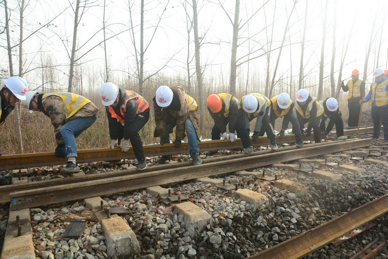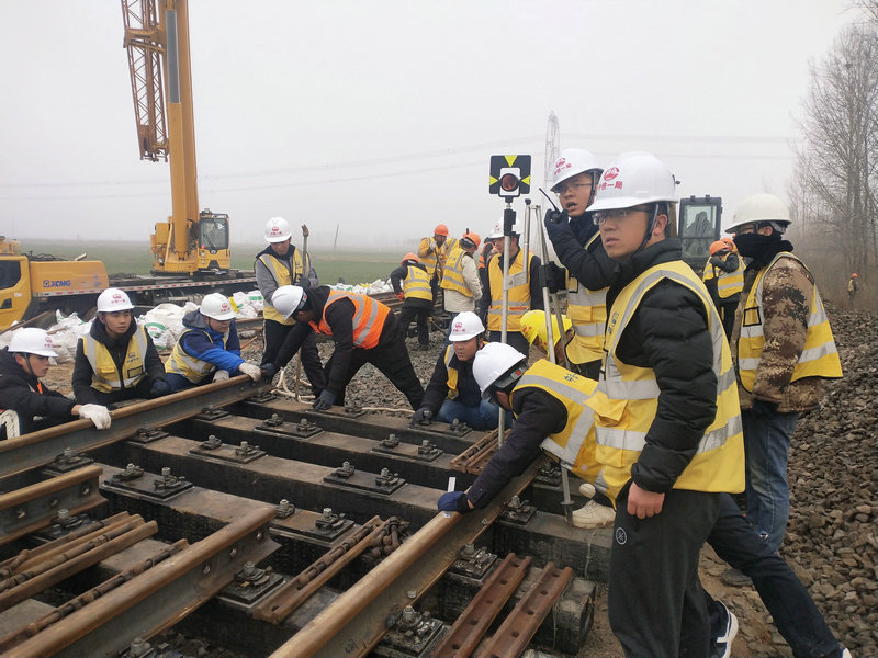 12月17日,魯南高鐵項(xiàng)目鋪軌基地聯(lián)絡(luò)線與梁寶寺煤礦專用鐵路接軌施工,天氣寒風(fēng)刺骨,像針一樣穿透心靈,這鬼天氣,路邊的行人已經(jīng)絕跡了,飛鳥,走獸,消失的無影蹤。經(jīng)過現(xiàn)場(chǎng)90人240分鐘的奮戰(zhàn),魯南高鐵項(xiàng)目鋪軌基地順利完成梁寶寺煤礦專用鐵路插鋪無尖軌道岔施工任務(wù)。數(shù)九寒天,施工現(xiàn)場(chǎng)陣陣朔風(fēng)透骨寒,作業(yè)人員穿戴齊全,按照事先分配好的工作密切配合,有條不紊的完成各道工序,拆軌裝軌、勻砟整修,整個(gè)施工過程,全體作業(yè)人員發(fā)揮了路橋人特有的能吃苦,能戰(zhàn)斗,能奉獻(xiàn),能打硬仗的工作作風(fēng),以實(shí)際行動(dòng)出色的完成了道岔插鋪任務(wù)。
