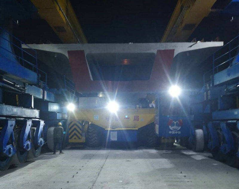 小里程方向架梁任務(wù)順利完成后,需要對(duì)架橋機(jī)進(jìn)行轉(zhuǎn)體調(diào)頭作業(yè),繼續(xù)完成大里程方向箱梁架設(shè)。運(yùn)架設(shè)備轉(zhuǎn)體調(diào)頭耗時(shí)耗力,項(xiàng)目部組織夜晚值班人員雙班倒,最大程度降低設(shè)備調(diào)頭時(shí)間。漆黑的夜里刺骨的風(fēng),穿著臃腫包裹嚴(yán)嚴(yán)實(shí)實(shí)的夜間作業(yè)人員在搖曳的燈光下隨著運(yùn)架設(shè)備緩緩向著梁場(chǎng)方向返回,三九嚴(yán)寒,滴水成冰。凌晨4時(shí),運(yùn)架設(shè)備在經(jīng)過18個(gè)小時(shí)的長途跋涉下順利返回梁場(chǎng)。此時(shí),在場(chǎng)的所有人雙眼都充滿了血絲,這些寒夜中的身影,雖然被凍得瑟瑟發(fā)抖,依然沒有絲毫懼色,而是堅(jiān)持到底。參與值班員工在零下十幾度的天氣中加班加點(diǎn),超負(fù)荷工作。以忘我的精神、飽滿的熱情、高昂的斗志,全面加快架梁施工進(jìn)度。