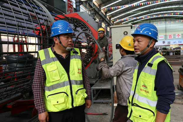 圖為楊鵬濤(左)在檢查鋼筋加工廠生產(chǎn)情況 說(shuō)起建設(shè)拌合站的難度,楊鵬濤深有感觸。工地沒(méi)電、沒(méi)水,他和兩名老職工、兩名民工,每天早晨6點(diǎn)半吃完早餐,就帶著兩瓶開水上工地,晚上十一、二點(diǎn)才回項(xiàng)目部,在工地吃了兩個(gè)多月的盒飯。拌合站一開工就遇到梅雨季節(jié),為了趕工期,幾乎天天冒雨作業(yè)。下雨時(shí)就打傘或穿雨衣指揮機(jī)械作業(yè),小雨不停施工,大雨就排水,在建設(shè)拌合站期間,楊鵬濤沒(méi)有離開過(guò)工地半步,他一個(gè)人就用壞了4把雨傘。高峰時(shí)共有14臺(tái)挖機(jī)、裝載機(jī)3臺(tái)、壓路機(jī)1臺(tái),自卸車7、8臺(tái)投入施工。他怕一離開現(xiàn)場(chǎng),這么多機(jī)械車輛窩工,會(huì)給項(xiàng)目部造成損失。他說(shuō):“現(xiàn)場(chǎng)管理人員,在與不在工地,施工效率肯定是不一樣的。”