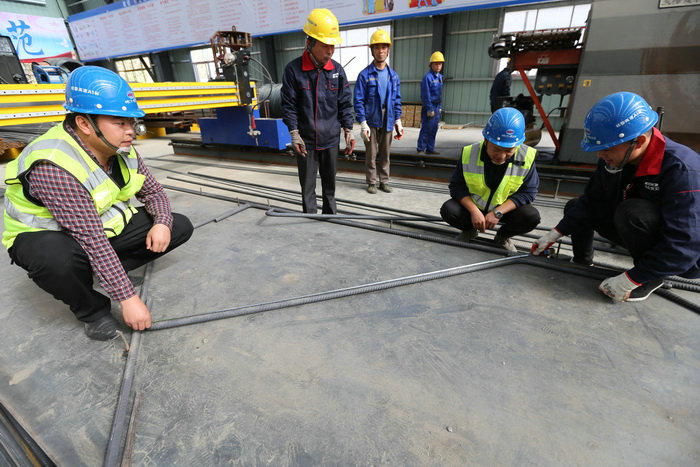 圖為生產(chǎn)蓋梁鋼筋籠骨架記者在現(xiàn)場(chǎng)看到,拌合站分為生產(chǎn)區(qū)、辦公區(qū)、生活區(qū),布局合理,場(chǎng)站建設(shè)標(biāo)準(zhǔn)高,辦公室、宿舍都安裝有空調(diào),還有工地浴室,晾衣棚,員工工作、生活環(huán)境舒適。在施工現(xiàn)場(chǎng)摸爬滾打20年的楊鵬濤深知,拌合站地處偏僻山區(qū),娛樂(lè)活動(dòng)相對(duì)較少難免寂寞,要讓員工有旺盛的精力投入到工作,一定要把伙食搞好,他在食堂管理上下足了功夫。在建拌合站廠房時(shí),就考慮到一、二工區(qū)、鋼筋加工廠人員在拌合站食堂就餐問(wèn)題。除食堂應(yīng)有的硬件設(shè)施外,聘請(qǐng)技術(shù)精湛的川廚,既能做可口的川菜,又能做各種花樣的面食,滿足南方、北方人的口味。