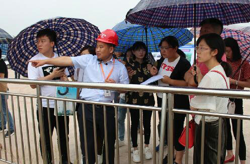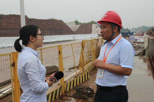 陸志濤經(jīng)理在觀景臺(tái)向來賓講解田家樞紐互通施工情況IMG_6932