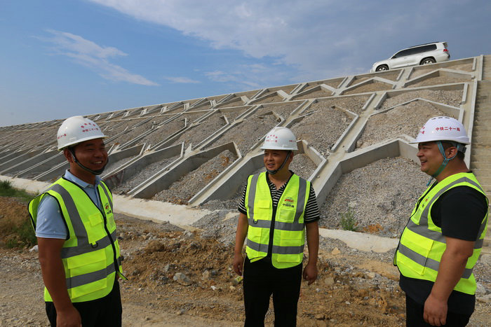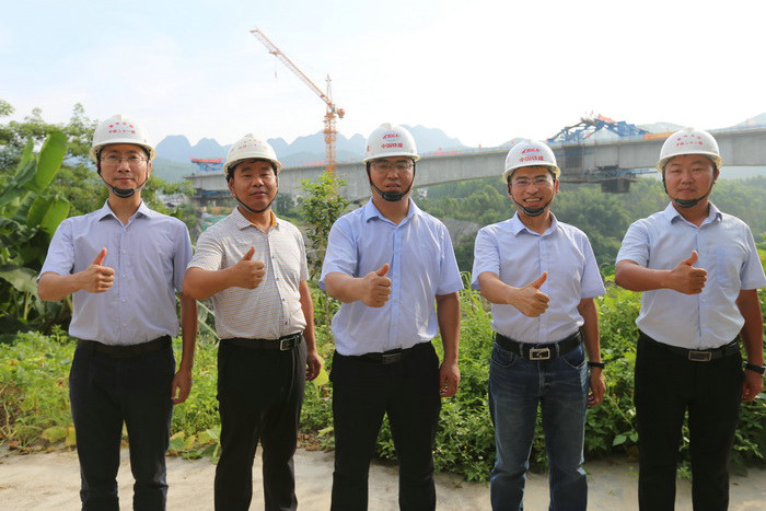 黃炬銀(左一)與常務(wù)副經(jīng)理衛(wèi)福星(中)、副經(jīng)理(何帥)在工地黃炬銀是一個(gè)對(duì)技術(shù)工作一絲不茍,尤其是對(duì)高難度工程,抓質(zhì)量抓規(guī)范施工親歷親為。他不顧五十多度的高溫,下到連續(xù)梁腹板內(nèi)對(duì)掛籃移動(dòng)、模板安裝、鋼筋焊接、鋼筋間距等檢查才放心。他說(shuō):“鋼筋焊接不牢、間距差一點(diǎn)都會(huì)對(duì)梁的受力結(jié)構(gòu)產(chǎn)生重大影響,絲毫馬虎不得。”2021年7月24日,紅渡紅水河特大橋連續(xù)梁順利合龍,這一全線重點(diǎn)控制工程獲得圓滿突破,業(yè)主專門(mén)給公司發(fā)去賀電祝賀。