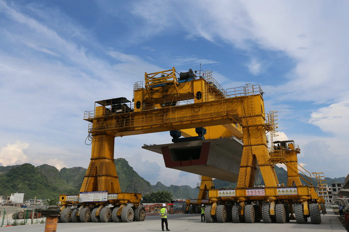 圖為架設(shè)900噸箱梁笑傲雪域筑天路