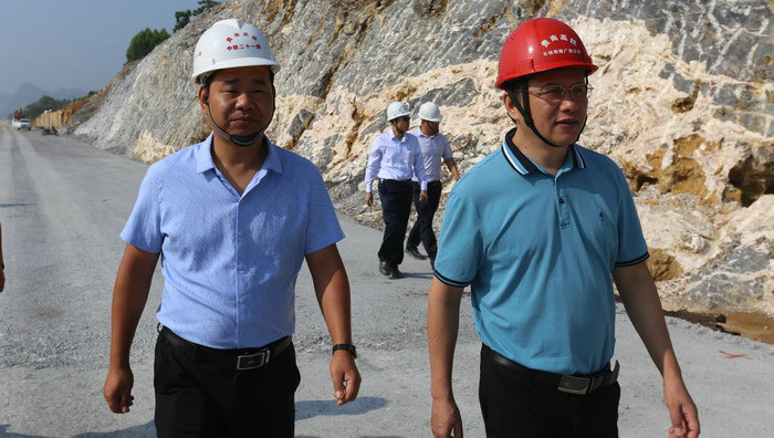 黃炬銀(左)陪同業(yè)主檢查工地貴南高鐵挑戰(zhàn)“喀斯特”地質(zhì)