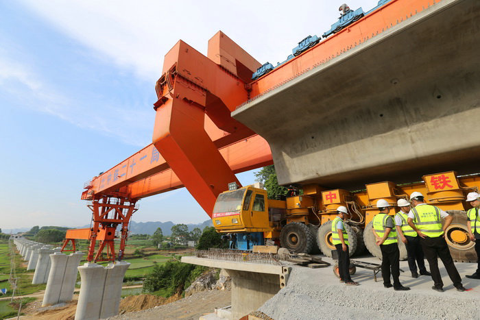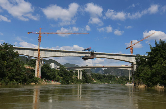 位于廣西境內(nèi)的貴南高鐵8標(biāo)段,橫跨河池都安、南寧馬山兩市兩縣。該標(biāo)段三座隧道貫通、9座橋梁下部結(jié)構(gòu)完工、國(guó)內(nèi)350公里高鐵跨度最大的純混凝土連續(xù)梁合龍,175萬(wàn)方路基土石方施工結(jié)束,主體工程完成80%。