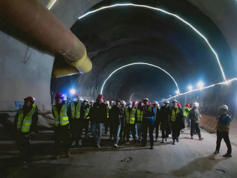 項目部施工的中梁山隧道進口第11次迎來百人觀摩團,圖為3月11日重慶交通大學(xué)隧道及軌道工程系大學(xué)生在中梁山隧道進口觀摩