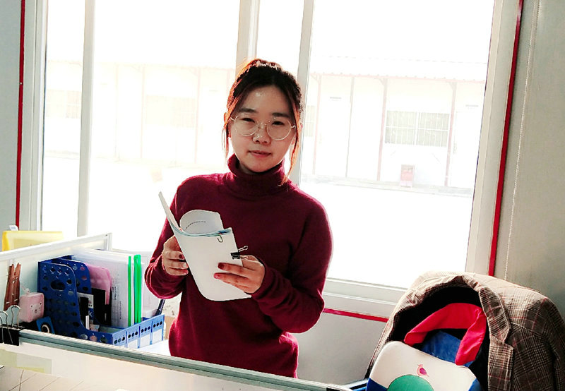 物資部見習(xí)的位暢,在18屆新學(xué)員報(bào)道之前,是整個(gè)項(xiàng)目部年齡最小的成員。她天性率真開朗,去年十一月份剛來沒幾天,大家就都認(rèn)識(shí)這個(gè)走起路來愛蹦愛跳的小姑娘了,都親切的叫她“小位暢”。別看她平時(shí)充滿活力笑嗒嗒,但只要認(rèn)真工作起來卻一點(diǎn)也不輸別人。今年過年前,因?yàn)椴渴彝录抑杏惺抡?qǐng)假回家,本來已經(jīng)晚走幾天的她又偷偷的退了票,主動(dòng)留下來堅(jiān)持工作。部長和領(lǐng)導(dǎo)不忍心,都說讓她早點(diǎn)回去吧,第一年出門工作早點(diǎn)回去和家里人過個(gè)好年??伤焐险f著馬上要走了,可還是堅(jiān)持把該工作都做完才在年前趕回家。不僅工作認(rèn)真踏實(shí),她還是一個(gè)頗有文藝范兒的小才女。局指揮部組織的元旦晚會(huì),她主動(dòng)提出可以組織大家一起跳舞;項(xiàng)目錄制《海草舞》視頻,她又主動(dòng)擔(dān)起教學(xué)任務(wù),編動(dòng)作,排練,教學(xué),忙的不亦樂乎;項(xiàng)目部晨練要多樣化,又是小位暢帶頭教大家跳舞,一首歌還能編出來好幾個(gè)版本的動(dòng)作,現(xiàn)在每天早上項(xiàng)目部晨練跳舞,都是她在隊(duì)前教學(xué)指導(dǎo),認(rèn)真的勁兒讓大家都紛紛打趣叫她“位老師”。去年剛來項(xiàng)目部的時(shí)候,大家都會(huì)故意問她,“一個(gè)小女孩能吃得了咱們施工單位的苦嗎”?她總會(huì)把頭一扭,“哼,別小看人!我來就是要吃苦的”,故作生氣的樣子總是逗得大家哈哈大笑,整個(gè)項(xiàng)目部頓時(shí)洋溢著青春的朝氣和活力。