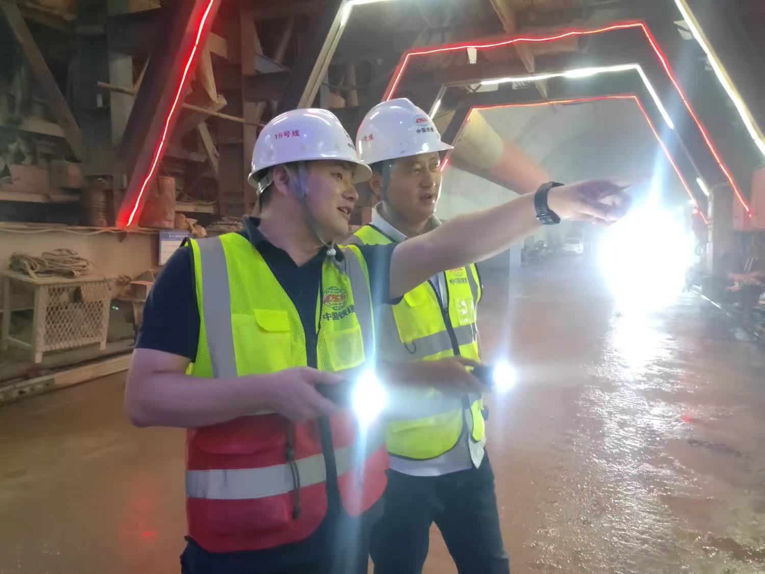 牛浩(右)陪同項(xiàng)目書記韓崇生(左)在中梁山隧道進(jìn)口進(jìn)行質(zhì)量檢查