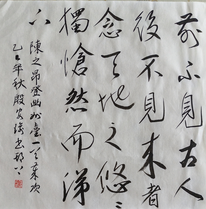 殷安瑜簡介: 中共黨員,大專文化,軍旅書法家、畫家。省和市書法家協(xié)會(huì)、美術(shù)家協(xié)會(huì)會(huì)員。書法作品入編全國建黨85周年書法集;2009書法作品入編《書法報(bào)》專號(hào)并出版;2014年書畫作品分獲江蘇揚(yáng)州瘦西湖杯國畫三等獎(jiǎng)和隸書二等獎(jiǎng);2019年隸書作品在揚(yáng)州市第三屆"綠楊風(fēng)”文藝新作評(píng)比中獲書法類三等獎(jiǎng);2019年,國畫作品參加全國書畫作品獲二等獎(jiǎng);2021年,國色清正圖獲江蘇省農(nóng)行杯優(yōu)秀作品獎(jiǎng)并入選江蘇揚(yáng)州市總書畫作品獎(jiǎng);2022年國畫作品入選紀(jì)念史可法誕辰420周年書畫展,出版書畫集并獲永久收藏。2024年7月1日,國畫清風(fēng)圖入選揚(yáng)州市邗江慶七一廉政書畫作品展;2024年9月,國畫倚春暉圖、書法名畫要如詩句讀隸書中堂分別入選丹青翰墨.凝心聚力襄偉業(yè)一慶祝新中國和人民政協(xié)成立七十五周年揚(yáng)州藝術(shù)館書畫作品展;2024年9月,100幅書畫作品在鐵道兵戰(zhàn)友網(wǎng)舉辦個(gè)人書畫作品展;2024年10月,80幅書畫作品在中建傳媒網(wǎng)舉行書畫作品展;至目前,個(gè)人書畫作品在全國各大報(bào)刊、雜志、全國網(wǎng)站、發(fā)表書法、國畫作品六百多幅。全國21個(gè)省份友好人士使用我的書法與國畫作品,數(shù)十幅作品被全國多家紀(jì)念館、美術(shù)館、博物館、文化館珍藏。