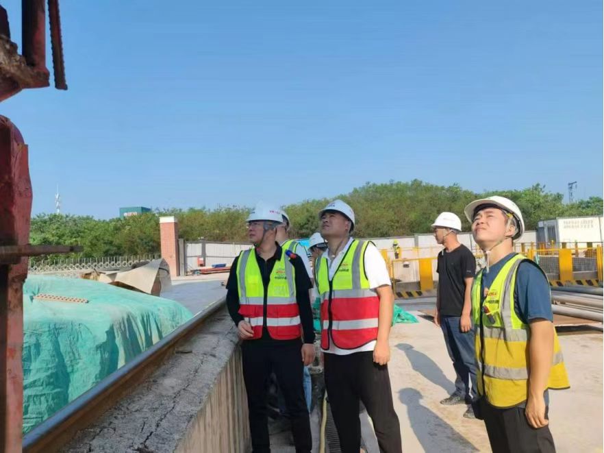 項(xiàng)目書記韓崇生(左一)帶班檢查橫向到邊、縱向到底