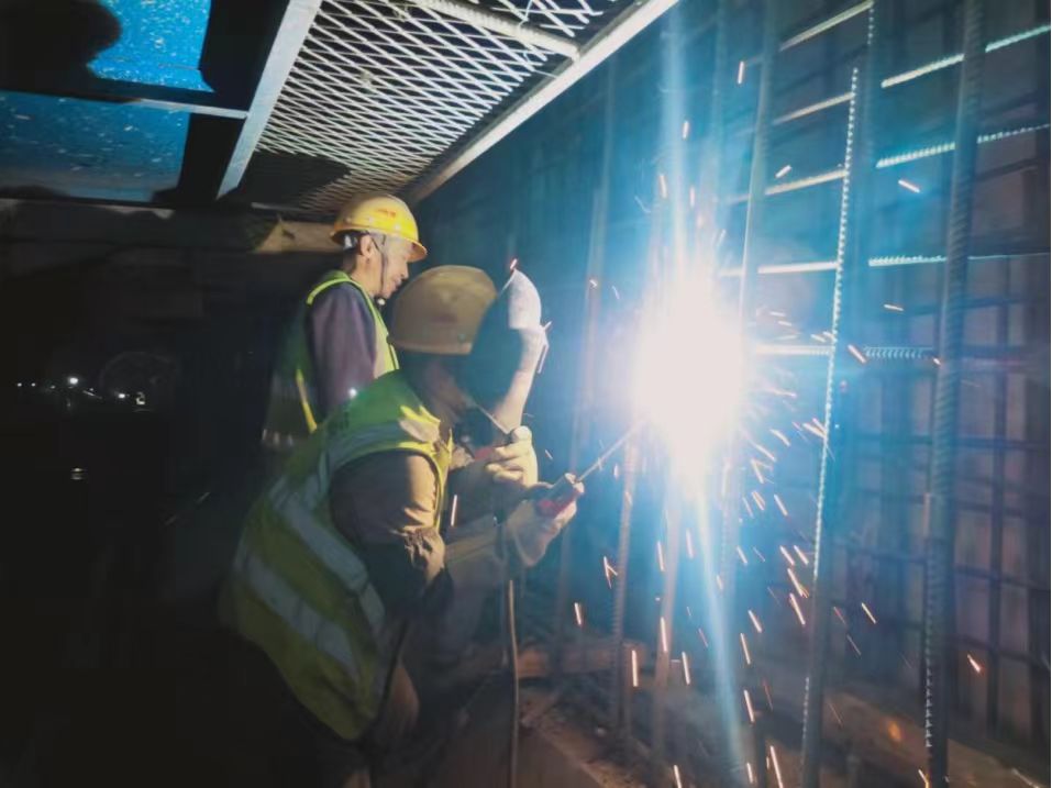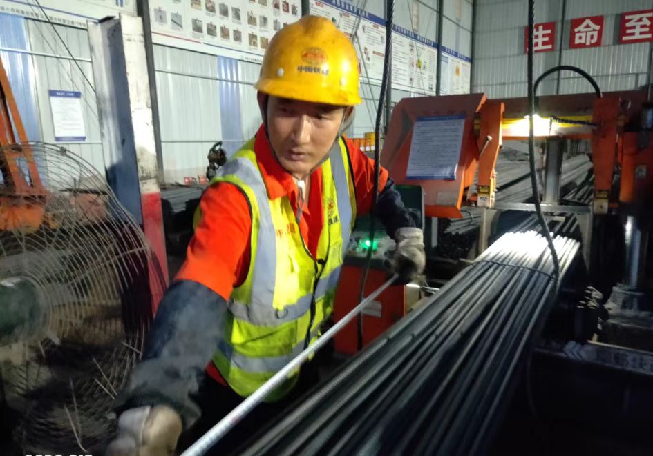 項(xiàng)目經(jīng)理阮超(左一)帶班檢查深入點(diǎn)面、確保將安全、質(zhì)量隱患控制在萌芽狀態(tài)(王澤勛攝影)