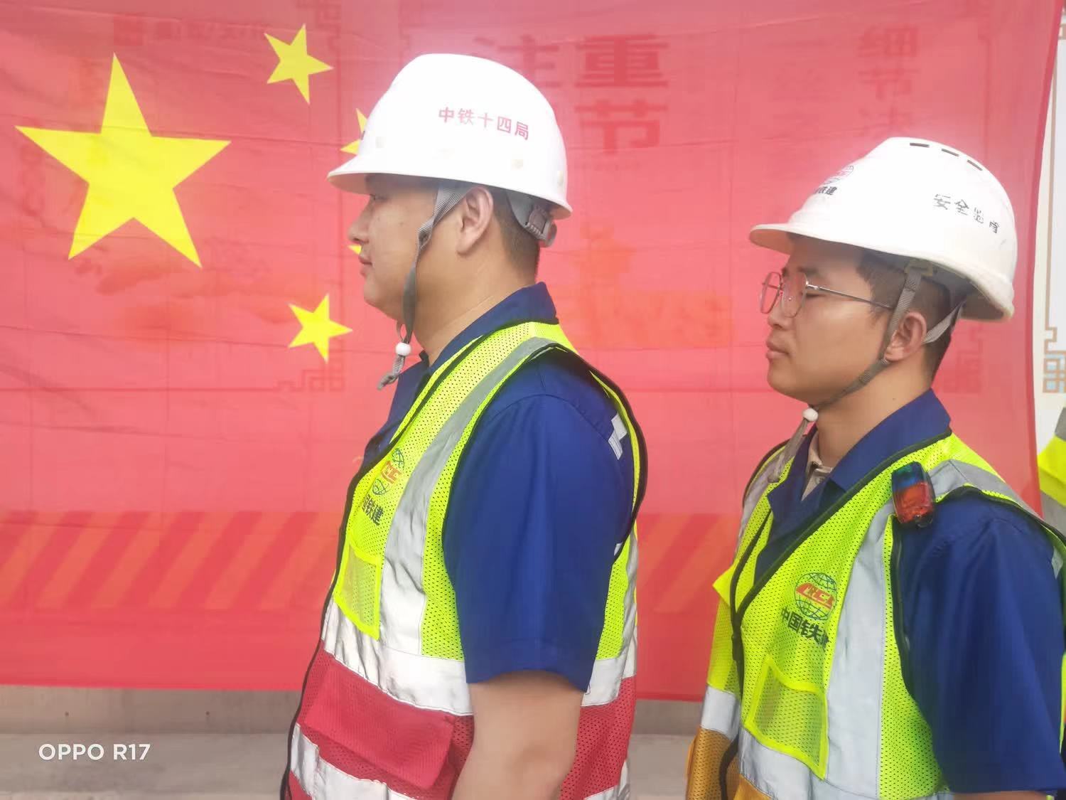 項目黨支部書記韓崇生帶領項目先進工作者閆其敢開展“愛國旗、跟黨走”留影活動