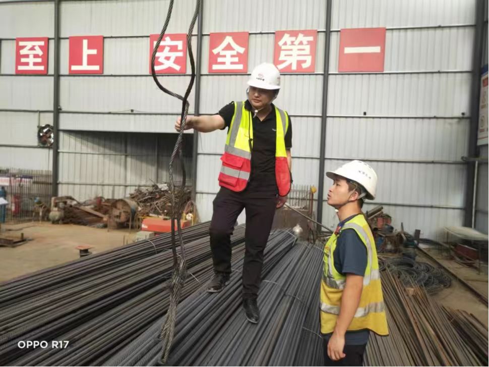 項(xiàng)目經(jīng)理帶隊(duì)對(duì)鋼筋加工車間進(jìn)行安全、質(zhì)量檢查