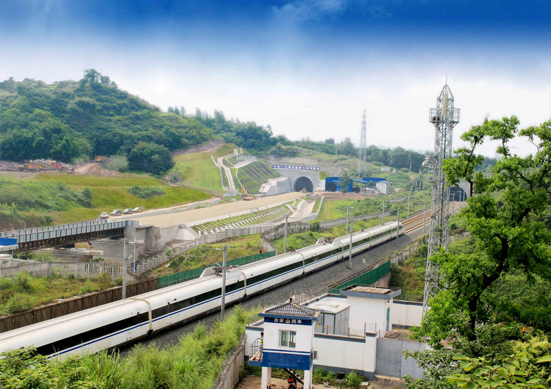 近日,筆者走進(jìn)正在建設(shè)中的中鐵十五局集團(tuán)重慶鐵路樞紐東環(huán)線DHZQ-1標(biāo)項(xiàng)目工地,放眼望去,滿眼綠色,綠色的路基護(hù)坡、綠色的防護(hù)柵欄、綠色的山體防護(hù)。聳立在鮮花綠草之上,與既有鐵路相向而行,整齊排列的光潔亮麗的橋墩等等,新建鐵路與既有渝貴高鐵線路只有十幾米之遙,但乘上既有線的高鐵列車,你也同樣會(huì)有“人在車上坐、車在畫中行”的美好感受與暢想……