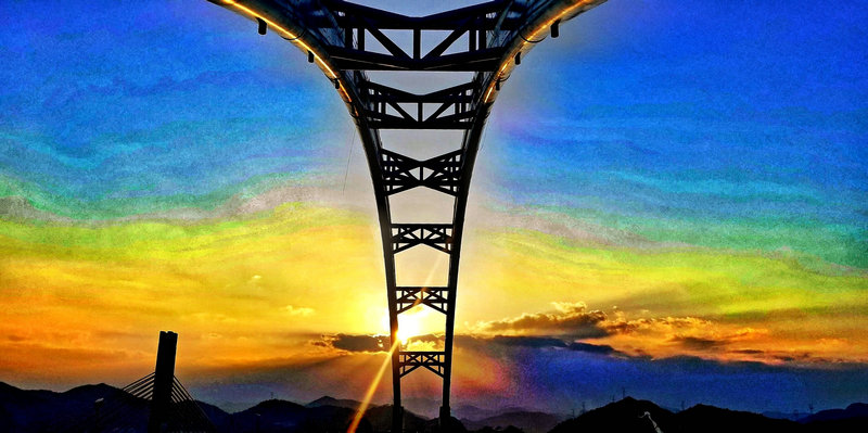 9月,秋意愈濃,清晨的日出及夜晚的月色撒在金臺鐵路靈江特大橋上,與自然融為一體,磅礴之余又多了些柔美、靜謐。