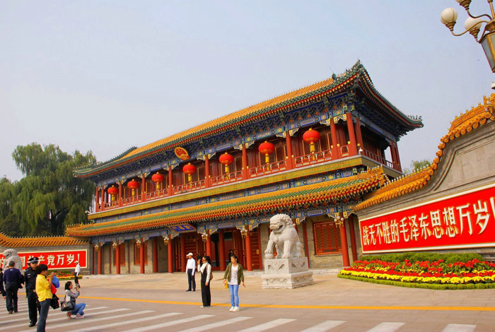 偉大祖國(guó)走過(guò)69年波瀾壯闊的光輝歷程,被稱為祖國(guó)心臟的北京,天安門(mén)廣場(chǎng)和人民英雄紀(jì)念碑、革命歷史博物館、人民大會(huì)堂、毛主席紀(jì)念堂、天安門(mén)城樓等氣勢(shì)恢弘的建筑,記錄了中國(guó)若干重大歷史事件。凡是到過(guò)廣場(chǎng)的每一個(gè)人,都會(huì)環(huán)顧四周的建筑,目不轉(zhuǎn)睛地眺望天安門(mén)城樓和毛主席畫(huà)像。據(jù)說(shuō)掛在城樓正中的毛主席像,高6米,寬4.6米,重1.5噸,之前有過(guò)8次變遷,直到1967年,最終確定了一個(gè)固定的版本。從此每年的國(guó)慶節(jié)前更換一次畫(huà)像,每年的畫(huà)像都有少許變化。他那仿佛熟睡的遺體和懸掛在天安門(mén)城樓上的巨幅畫(huà)像,便是他歷史功績(jī)的具體體現(xiàn),“翻身不忘共產(chǎn)黨,幸福全靠毛主席”這句話包含了人民對(duì)一代偉人的敬仰和愛(ài)戴。