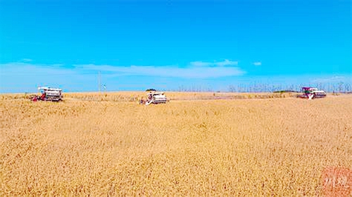 收割機(jī)轟鳴中金黃翻涌成瀑布