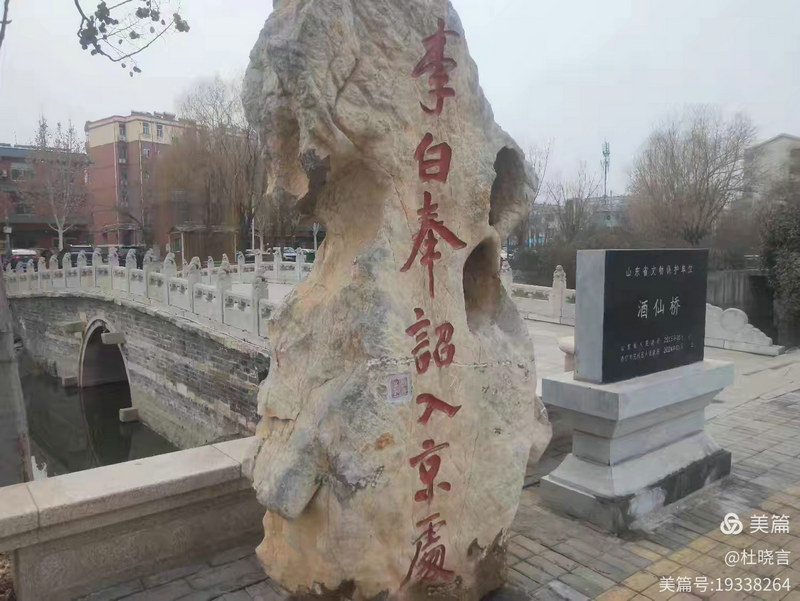 在濟(jì)寧市兗州區(qū),每日出入,八百米路程總在酒仙橋畔稍停。青石板上“李白奉詔進(jìn)京處”的碑刻,如盞長(zhǎng)明燈,照見我這后輩,也映著千年前的詩魂。