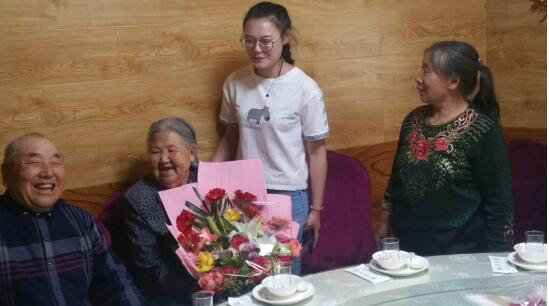 圖為電氣化公司上海地鐵206標(biāo)項(xiàng)目部為馮正奶奶送上鮮花與蛋糕
