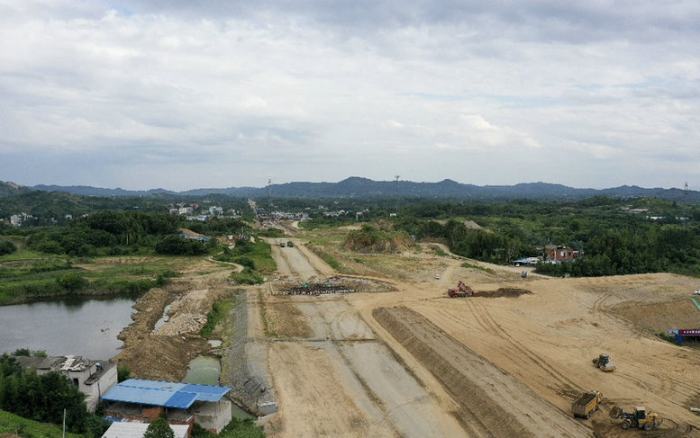 (航拍建設(shè)中的鋪軌基地與京九鐵路浠水站聯(lián)絡(luò)線)