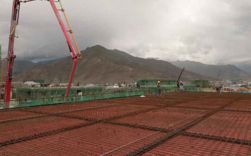 6月27日10時,隨著最后一方混凝土澆筑完成,經(jīng)中鐵二十一局四公司拉林鐵路項目部70余名施工人員歷時兩個月的艱苦鏖戰(zhàn),拉林鐵路拉薩西機務(wù)段單身宿舍順利封頂。