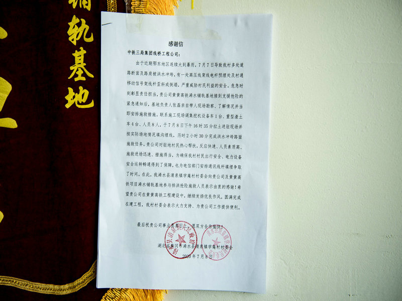 ——黃黃項(xiàng)目浠水南站鋪軌基地獲贈抗洪救災(zāi)錦旗