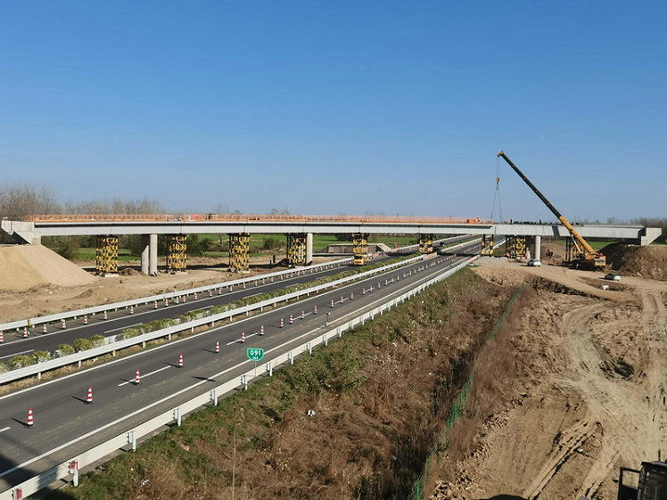 上跨高速施工,車(chē)流量大,施工期間需同時(shí)保證車(chē)輛正常有序通行,這也成為施工中的一大難點(diǎn)。自2021年9月27日首片鋼箱梁成功架設(shè)至今,歷時(shí)48天,中間經(jīng)歷國(guó)慶長(zhǎng)假和降雨天氣影響,為確保鋼箱梁順利、安全架設(shè),項(xiàng)目公司、總監(jiān)辦、駐地辦、總包部、項(xiàng)目部多次召開(kāi)施工技術(shù)交底會(huì)及安全交底會(huì),嚴(yán)格按照鋼箱梁施工方案布置場(chǎng)地、選擇吊機(jī)吊具、明確人員分工、制定應(yīng)急處理預(yù)案,嚴(yán)控鋼箱梁安裝過(guò)程中的安全質(zhì)量,各級(jí)領(lǐng)導(dǎo)多次親臨現(xiàn)場(chǎng)指導(dǎo),路政交警全程保通,有力保障了鋼箱梁吊裝的順利完成。