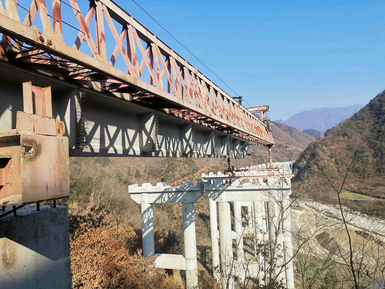 據(jù)悉,高橋寺南河大橋共計(jì)23跨、200片梁(其中40米T梁190片、30米T型梁10片),80根墩柱(其中博壁空心墩柱8根、圓柱橔柱72根),目前已經(jīng)完成40米T梁76片,30米T梁2片,墩柱施工已全部完成。主橋連續(xù)剛構(gòu)采用掛籃懸臂澆筑法施工,全橋共64個(gè)懸澆段,懸澆段節(jié)段長(zhǎng)度為5×300+3×350cm,邊跨現(xiàn)澆段長(zhǎng)度為2.42m,采用托架法施工,邊跨合龍段長(zhǎng)度為1.5m,中跨合龍段長(zhǎng)度2m,合龍段采用掛籃施工。目前連續(xù)剛構(gòu)掛籃懸臂澆筑已完成懸澆段62個(gè),預(yù)計(jì)春節(jié)年后全部完成貫通。