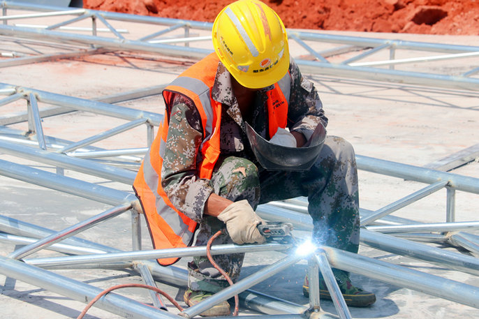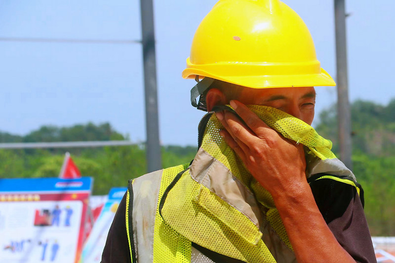 “看著廠(chǎng)房在自己的手中一點(diǎn)點(diǎn)從無(wú)到有搭建起來(lái),與這種成就感比起來(lái),曬一點(diǎn)簡(jiǎn)直不值一提!”上午10點(diǎn),烈日炎炎下的施工現(xiàn)場(chǎng)沒(méi)有任何遮擋,火辣辣的陽(yáng)光高直接照射在高空作業(yè)人員張工身上,談及高溫作業(yè),他更相信堅(jiān)守的力量。在梨東項(xiàng)目,像張工一樣的人還有很多,他們頭頂驕陽(yáng),忍受著烈日“烤”驗(yàn),堅(jiān)守崗位,在現(xiàn)場(chǎng)規(guī)定的夏季有限作業(yè)時(shí)間內(nèi),用行動(dòng)擔(dān)起自己的責(zé)任。