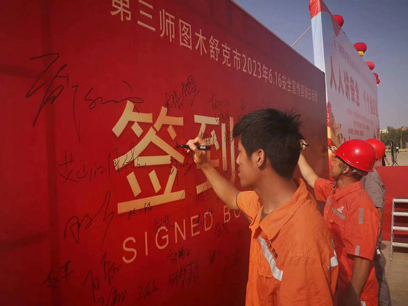 圖木舒克訊(通訊員 曾雷)6月16日,是全國第20個“安全生產(chǎn)宣傳咨詢?nèi)?rdquo;,為積極響應(yīng)第三師圖木舒克市安全生產(chǎn)委員會號召,北新路橋集團(tuán)圖昆公路二標(biāo)項(xiàng)目部與第三師交通運(yùn)輸局聯(lián)合參加安全生產(chǎn)宣傳咨詢?nèi)栈顒印?