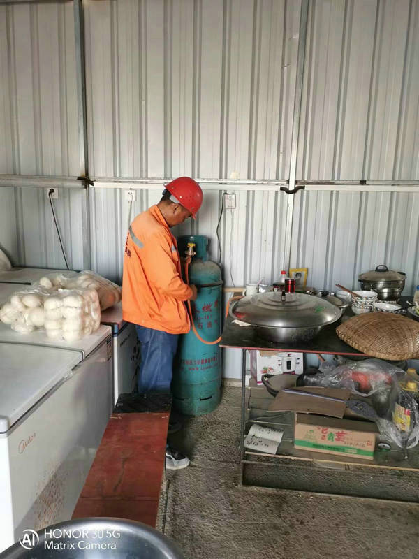 檢查中,安全環(huán)保部認真檢查駐地及民工生活區(qū)廚房燃氣使用情況,重點檢查液化氣罐使用安全性;是否安裝泄露報警裝置;液化氣管道安全;消防器材配備,提出整改意見建議,并普及應急處置常識。針對在檢查中發(fā)現(xiàn)的問題,逐一建立問題隱患臺賬,拿出切實可行的整改措施,確保整改落實到位。