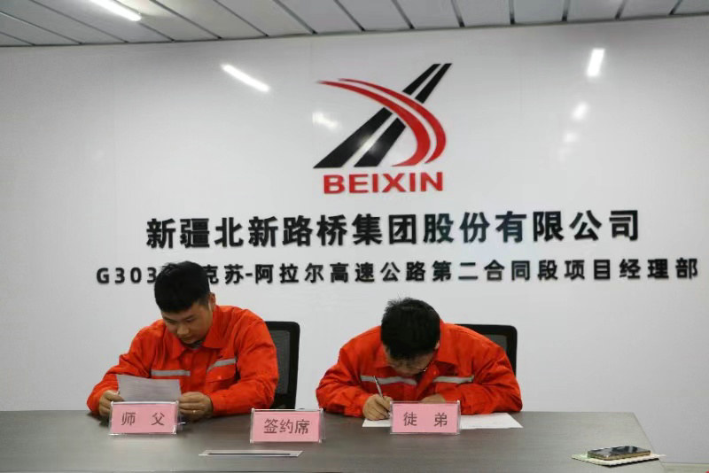 活動中,16對師徒與18名員工共同觀看兵團(tuán)交建公司宣傳片,了解公司企業(yè)文化及公司發(fā)展歷程,隨后現(xiàn)場簽訂《導(dǎo)師帶徒合同書》,明確雙方職責(zé),導(dǎo)師結(jié)合徒弟實(shí)際情況,制定階段性可實(shí)現(xiàn)的目標(biāo),有針對性地制定培養(yǎng)計(jì)劃。