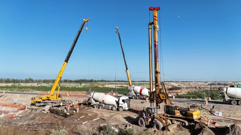 塔北二干渠大橋全長308米,采用6x30m變寬現(xiàn)澆箱梁+3x40m 連續(xù)T梁組合,是該標(biāo)段最長的大橋和重要的控制性工程,該大橋橫跨玉阿新公路、塔北二干渠及農(nóng)田機(jī)耕道,與柳源互通接壤。大橋樁基共有50根,最大孔深達(dá)60米,最大孔徑為2米,所處地質(zhì)條件復(fù)雜,存在較厚的粉土層,容易出現(xiàn)塌孔、擴(kuò)孔問題。為加快施工進(jìn)度,保質(zhì)保量完成節(jié)點(diǎn)任務(wù),根據(jù)地質(zhì)條件和施工環(huán)境,項(xiàng)目多次組織召開樁基施工技術(shù)質(zhì)量交流會(huì),多措施解決施工生產(chǎn)中安全質(zhì)量和施工進(jìn)度問題。一是加強(qiáng)施工過程控制,實(shí)施監(jiān)理、技術(shù)員全程旁站,把控各個(gè)工序環(huán)節(jié)確保施工流程符合標(biāo)準(zhǔn)化規(guī)范要求,保障施工質(zhì)量;二是加緊資源調(diào)配與現(xiàn)場(chǎng)保障,合理調(diào)整人員、機(jī)械等資源,保障現(xiàn)場(chǎng)物資、機(jī)械供應(yīng)滿足施工需求,以滿足施工生產(chǎn)需求,保障施工進(jìn)度;三是加大施工現(xiàn)場(chǎng)安全巡查和督導(dǎo)力度,落實(shí)安全責(zé)任制,將技術(shù)交底內(nèi)容提前向所有作業(yè)人員進(jìn)行現(xiàn)場(chǎng)交底,及時(shí)處理施工過程中出現(xiàn)的問題,確保樁基快速成孔。
